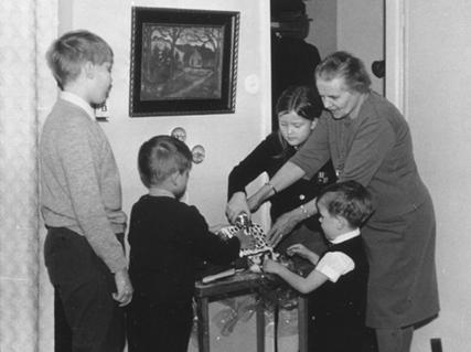 Kuvassa Karin Äyräpää avustaa lastenlapsiaan